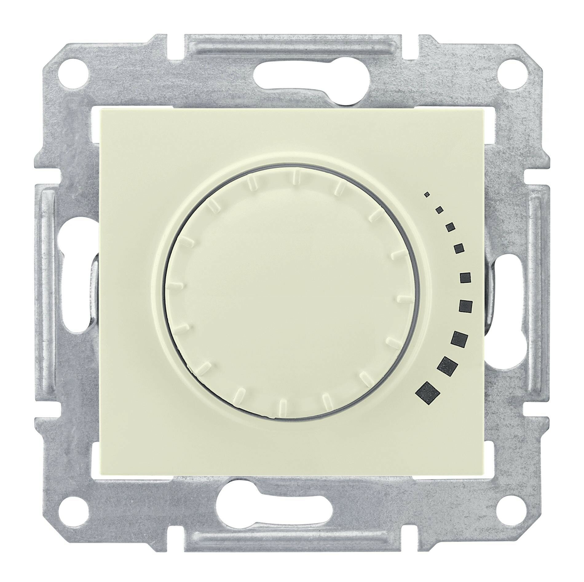 Лучшие цены. Диммер поворотный Шнайдер Седна бежевого цвета в рамку (механизм), используется для управления диммируемыми лампами – позволяет менять интенсивность освещения в помещении. Включается с помощью поворота. Светорегулятор подходит для ламп: Галогенная лампа 230 В мощностью 60–325 Вт Низковольтная галогенная лампа с ферромагнитным трансформатором мощностью 60–325 ВА Лампа накаливания мощностью 60–325 Вт Тип зажима жил провода: винтовой. Магазины в вашем городе.
