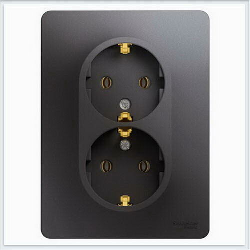 Лучшие цены. Розетка с/з двойная, в сборе Glossa Графит Арт. GSL001324Schneider Electric серия Glossa набирает все большую популярность, бюджетная цена, отличное качество, и богатейшая палитра цветов, просто кладезь для дизайнеров.Коллекция постоянно пополняется новым цветовым решением, таким как Glossa Гафит и др. Магазины в вашем городе.