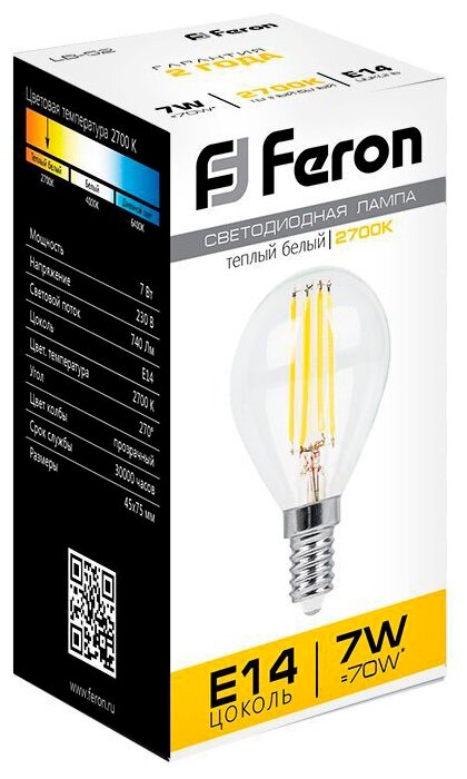 Лучшие цены. В светодиодных лампах Feron LB-52 применяются линейные светодиоды, которые придают лампочке оригинальный внешний вид и позволяют использовать их в светильниках и люстрах с прозрачными плафонами или вообще без них, что привнесет интересную изюминку в любой интерьер. Зажженные светодиодные нити создают прекрасный декоративный эффект, при этом ярко освещая помещение. Магазины в вашем городе.