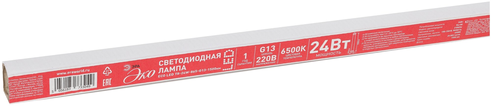 Лампочка Лампа светодиодная ЭРА smd T8-24w-865-G13 1500mm ECO