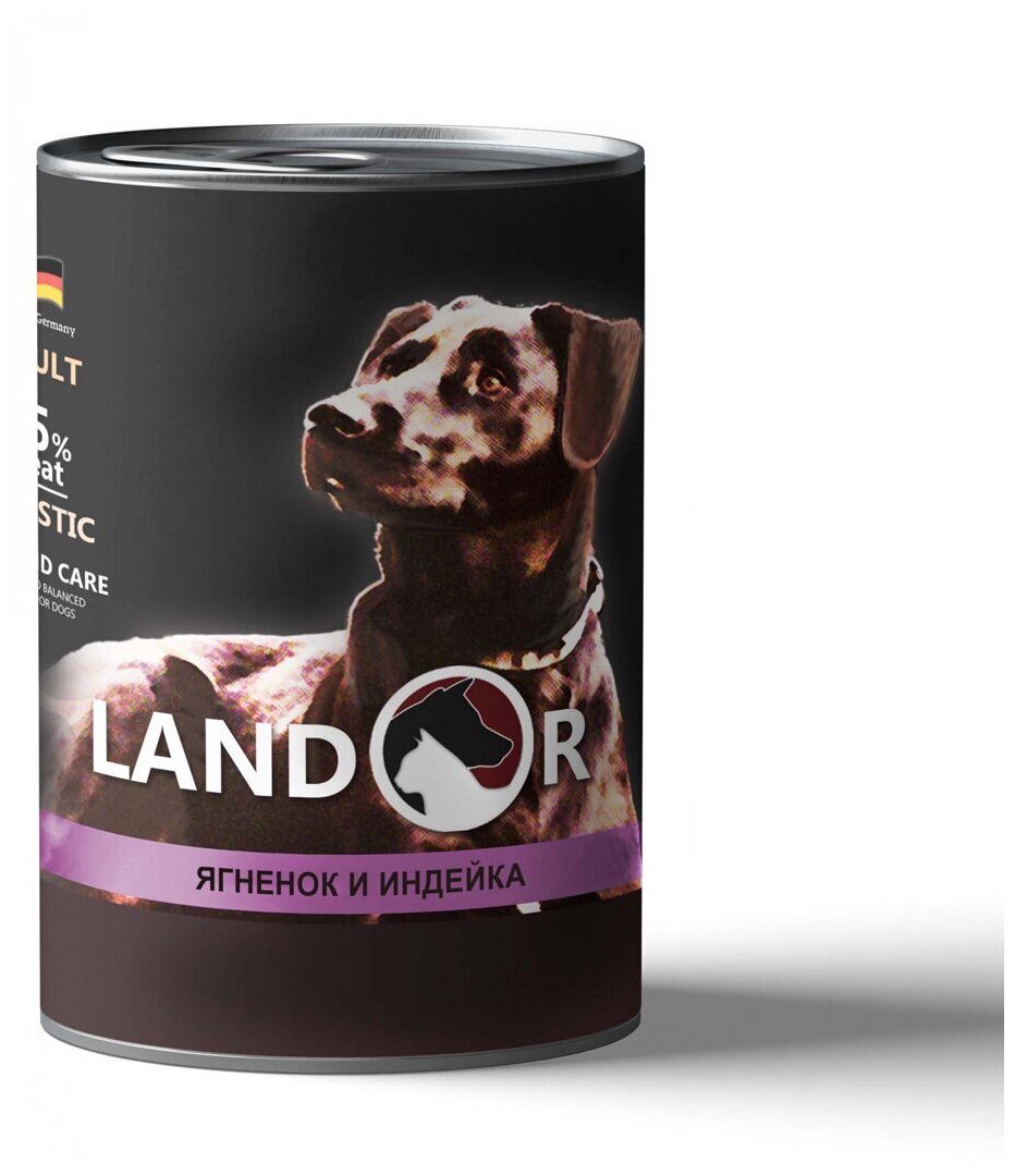 Полнорационный влажный корм LANDOR для собак всех пород ягненок с индейкой, 400 г * 6шт.