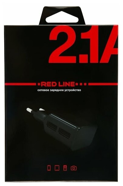 Зарядное устройство сетевое (220 В) RED LINE NT-2A, 2 порта USB, выходной ток 2,1 А, черное, УТ000009404