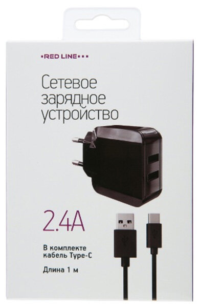 Лучшие цены. Сетевое зарядное устройство Red Line 2 USB, 2.4A Type-C Black универсальный адаптер, предназначенный для зарядки совместимых гаджетов: подходит для смартфонов, планшетов, планшетных компьютеров, видео- и аудиотехники. Модель представлена в прочном и компактном пластиковом корпусе черного цвета, предназначена для подключения к стандартной бытовой сети переменного тока. Может подключаться как к евророзеткам, так и к отечественным. В корпус изделия встроены два USB-порта. Магазины в вашем городе.