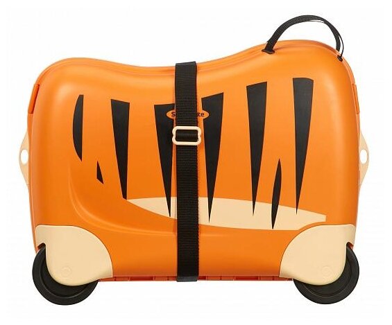 Лучшие цены. Детский чемодан Samsonite из коллекции Dream Rider превратит путешествие вашего ребенка в настоящую сказку! Чемодан выполнен из самого прочного полимера, использующегося в производстве чемоданов - полипропилена. Чемодан очень легкий, на четырех колесах, на нем можно даже ехать верхом. Также есть длинный ремень, позволяющий нести чемодан на плече. Основное отделение на защелках, внутри без подклада, Одно из отделений оснащено упругими перекрестными ремнями. Модель оранжевого цвета с изображением тигра. Магазины в вашем городе.
