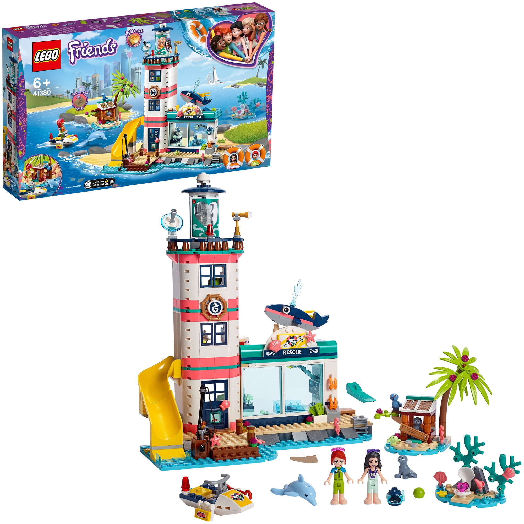 Лучшие цены. Конструктор LEGO Friends 41380 Спасательный центр на маяке. Присоединяйся к подружкам LEGO Friends Мие и Эмме, которые следят за ситуацией на море из Спасательного центра на маяке. Когда поступит сигнал о том, что животные попали в беду, помоги Мие спустить на воду её водный скутер. Но надо спешить: морской лев застрял в обломках на одном из островов. Теперь ей надо перелезть через обломки и освободить беднягу. Здесь спрятано ещё кое-что: таинственная карта сокровищ. Магазины в вашем городе.