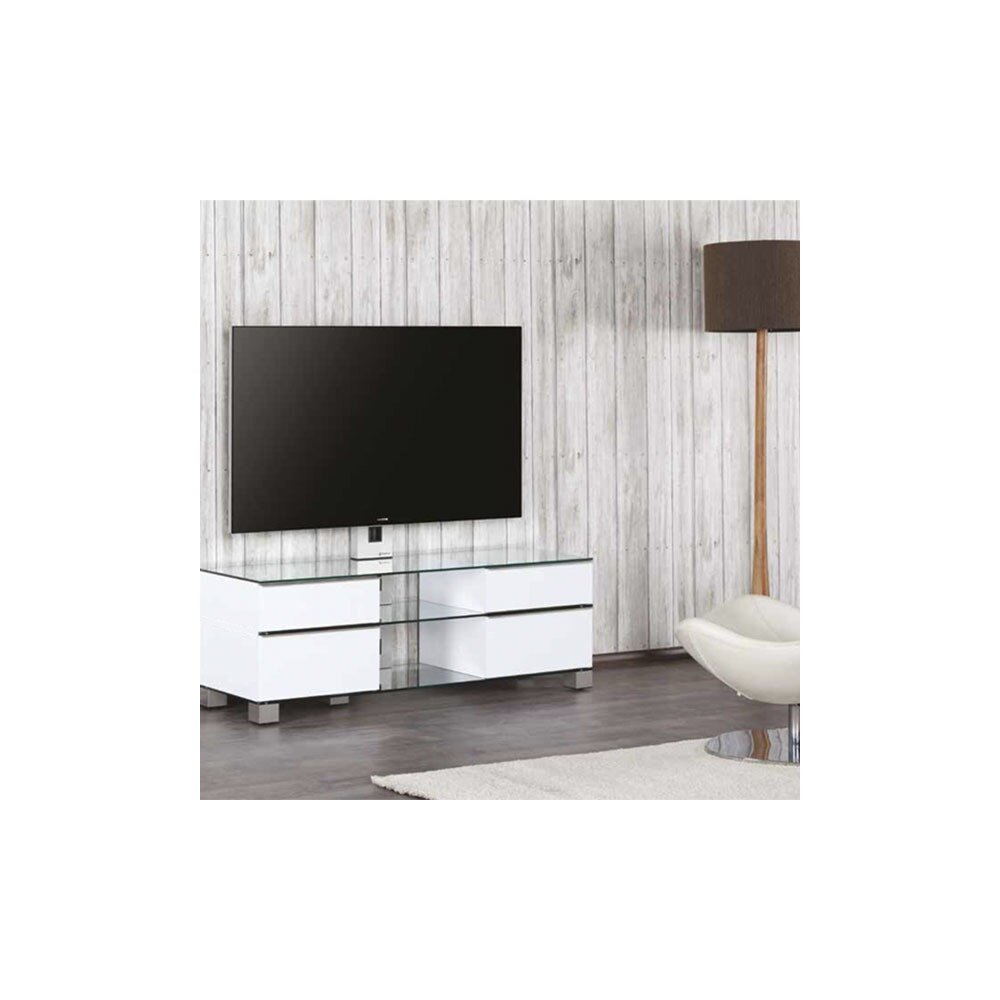 Стойка под ТВ Sonorous MD 8340 прозрачное стекло / ножки стального цвета/ белые ящики