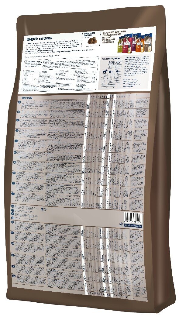 Лучшие цены. Для взрослых собак мелких пород весом до 10 кг с повышенными потребностями в энергии и для чувствительных к корму собак. На основе лосося, кролика и ягненка с картофелем. Корм, не содержащий злаков, оптимально подходит для чувствительных собак. Корм Happy Dog Mini Canada разработан специально для взрослых собак мелких пород. В состав исключительно вкусного полнорационного корма Mini Canada входит нежное мясо лосося, вкусное мясо кролика и ягнёнка, а также картофель, не содержащий глютена.Уникальный комплекс. Магазины в вашем городе.