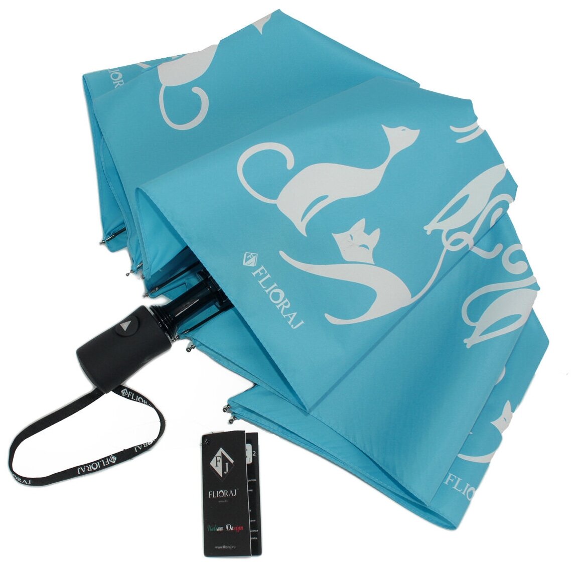 Зонт женский Flioraj Голубой 3 сложения Полуавтомат Антиветер 100617 FJ