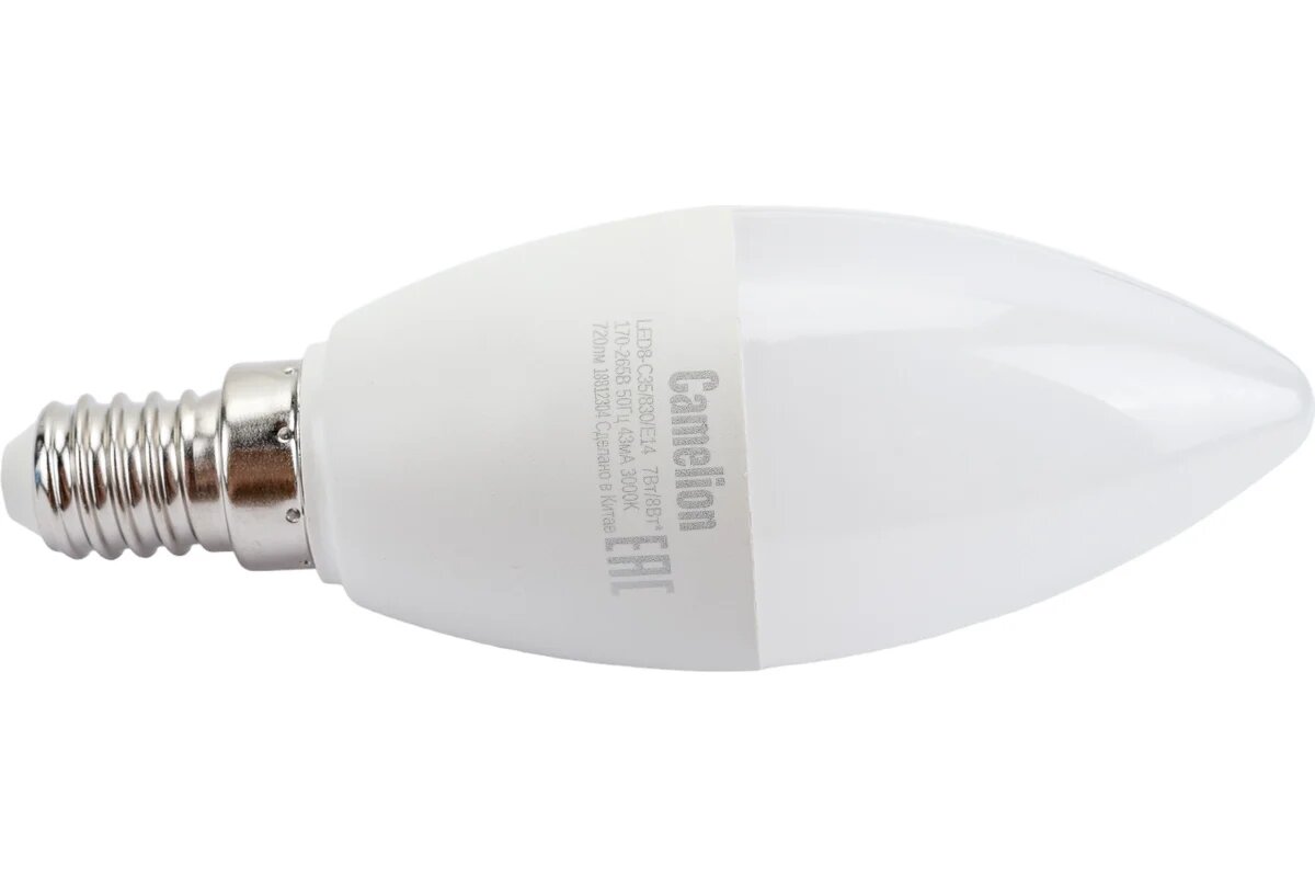Лампа CAMELION Е14 8Вт 3000K 720Лм LED8-C35/830/E14 светодиодная 12385 теплый белый, свеча