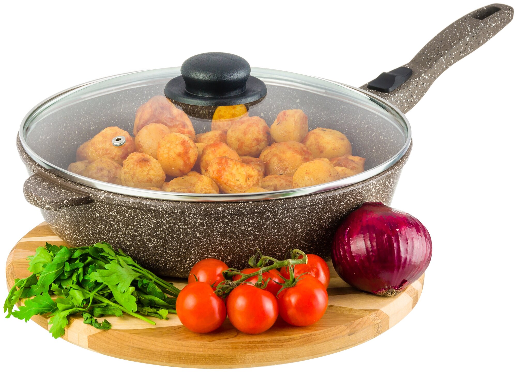 Сковорода глубокая 28 см Elan Gallery Гармония Вкуса Коричневый опал с крышкой D28, съёмная ручка .
