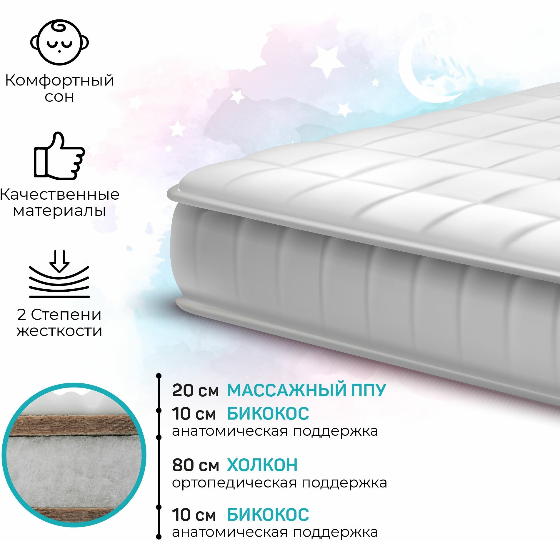 Лучшие цены. Матрас Amarobaby Ortho Massage - это матрас с ортопедическим массажным эффектом. Оптимальное и грамотное сочетание цены и качества. Особенности: эффект микромассажа. Натуральные материалы. Две стороны разной степени жёсткости. Съемный чехол. Для детей от рождения. Размер: 119 х 59 х 12 см В жизни крохи сон занимает очень важное место. От правильно подобранного матраса зависит правильное распределение нагрузки на позвоночник, стабильное развитие костной системы и, что не мало важно, правильная осанка малыша. Магазины в вашем городе.
