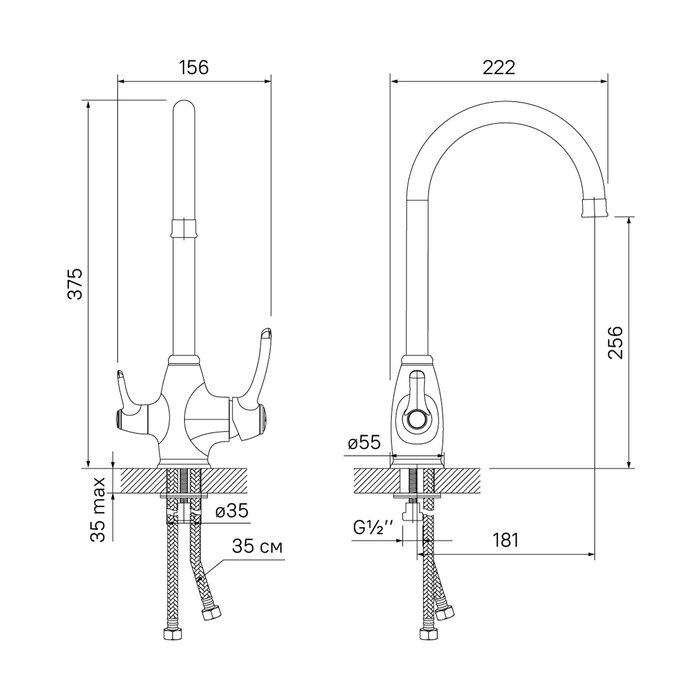| Глубина струи | 258 мм / излив — 200 мм / |