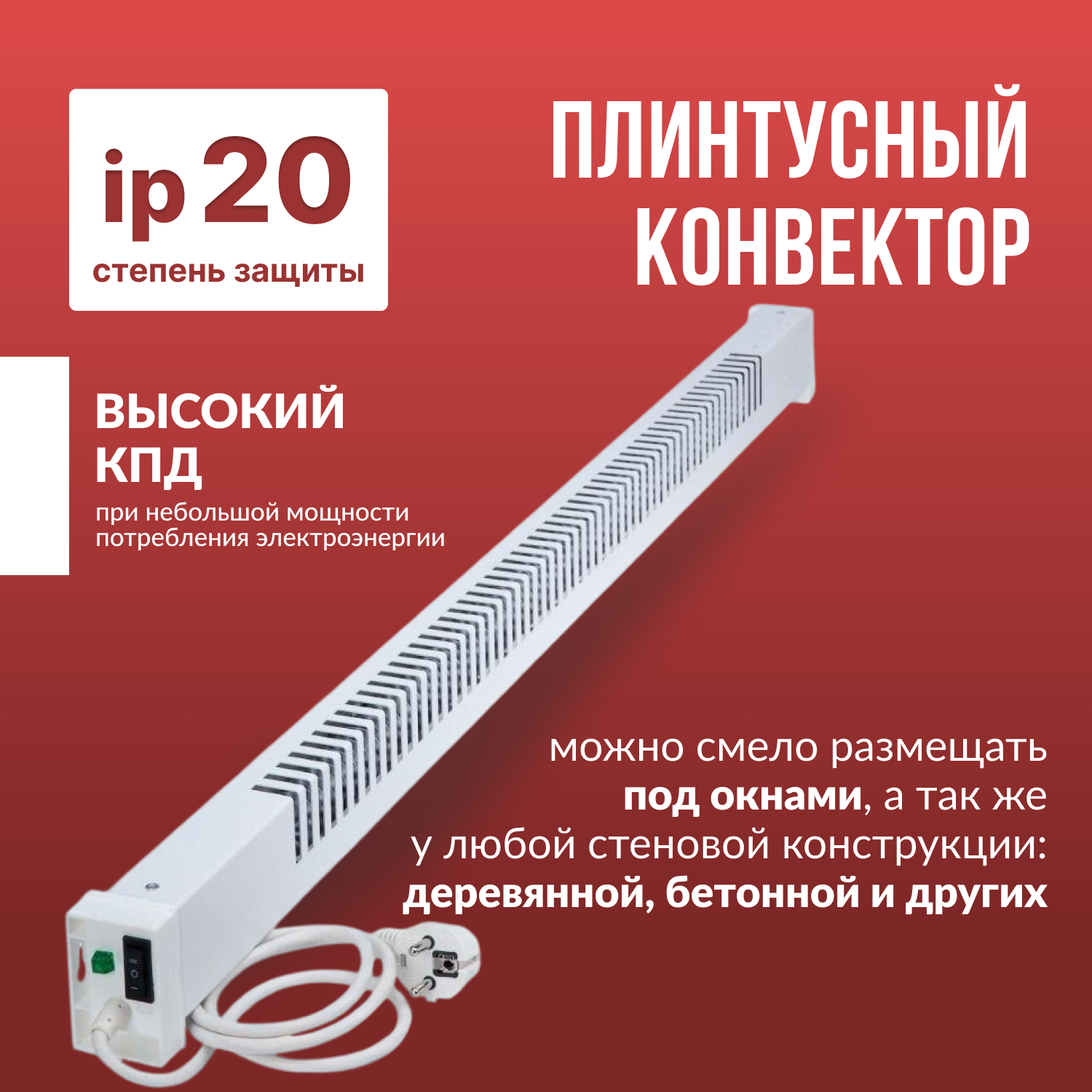 Конвектор Обогреватель плинтусный Бриз БК 200Ф, белый, вилка слева