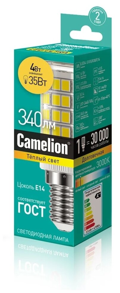 Лампочка Camelion LED4-S105/830/E14 (Эл.лампа светодиодная 4Вт 220В)