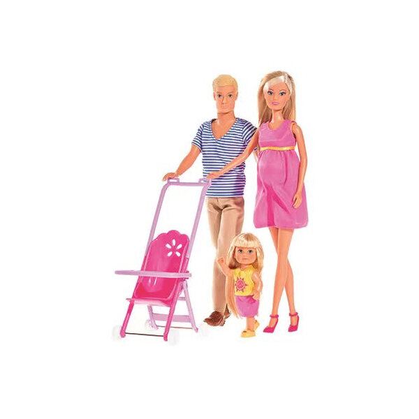 Лучшие цены. У Штеффи настоящая семья: муж Кевин, маленькая дочка Еви и малыш, который находится в животике. Ребенок у Штеффи из живота вынимается легко и при необходимости помещается обратно. Малыша после рождения можно завернуть в мягкое одеяльце. Коляска Еви может использоваться как стульчик для кормления, а к ручкам привязан небольшой мешочек, в который можно положить все необходимое, чтобы отправиться на прогулку с детьми. Магазины в вашем городе.