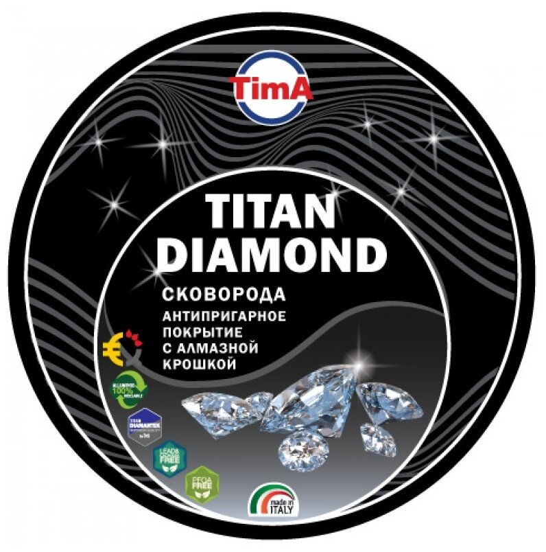 Лучшие цены. Серия кованой посуды TITAN DIAMOND с антипригарным покрытием DIAMANTEK разработана и произведена для российской торговой марки «TimA» компанией TVS, Италия). Эта серия – новое поколение так полюбившейся отечественным покупателям посуды «Titan Granit». Главной отличительной особенностью данной серии является использование многослойного антипригарного покрытия последнего поколения «DIAMANTEK by TVS», отличающееся сверхустойчивостью к царапинам и износу. Магазины в вашем городе.