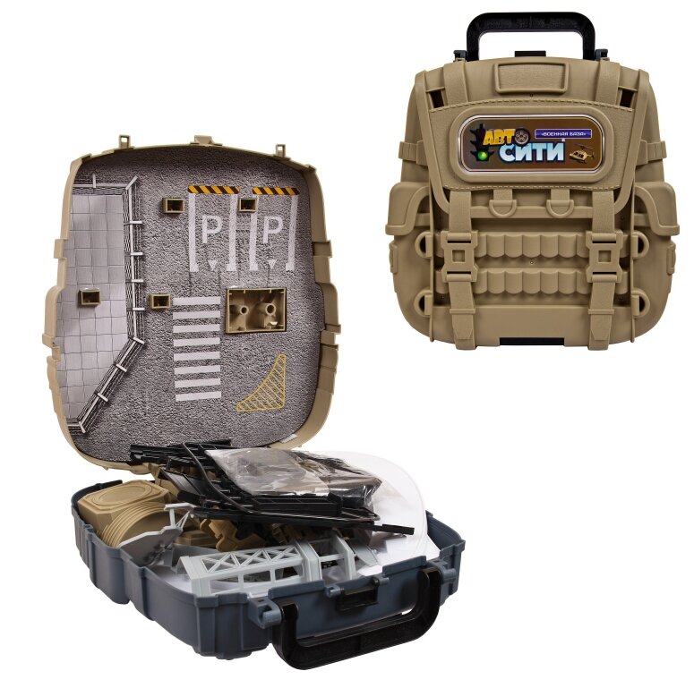 Автотрек / железная дорога Трек в рюкзаке ABtoys Автосити Военная база в наборе с 2 машинками и игровыми предметами