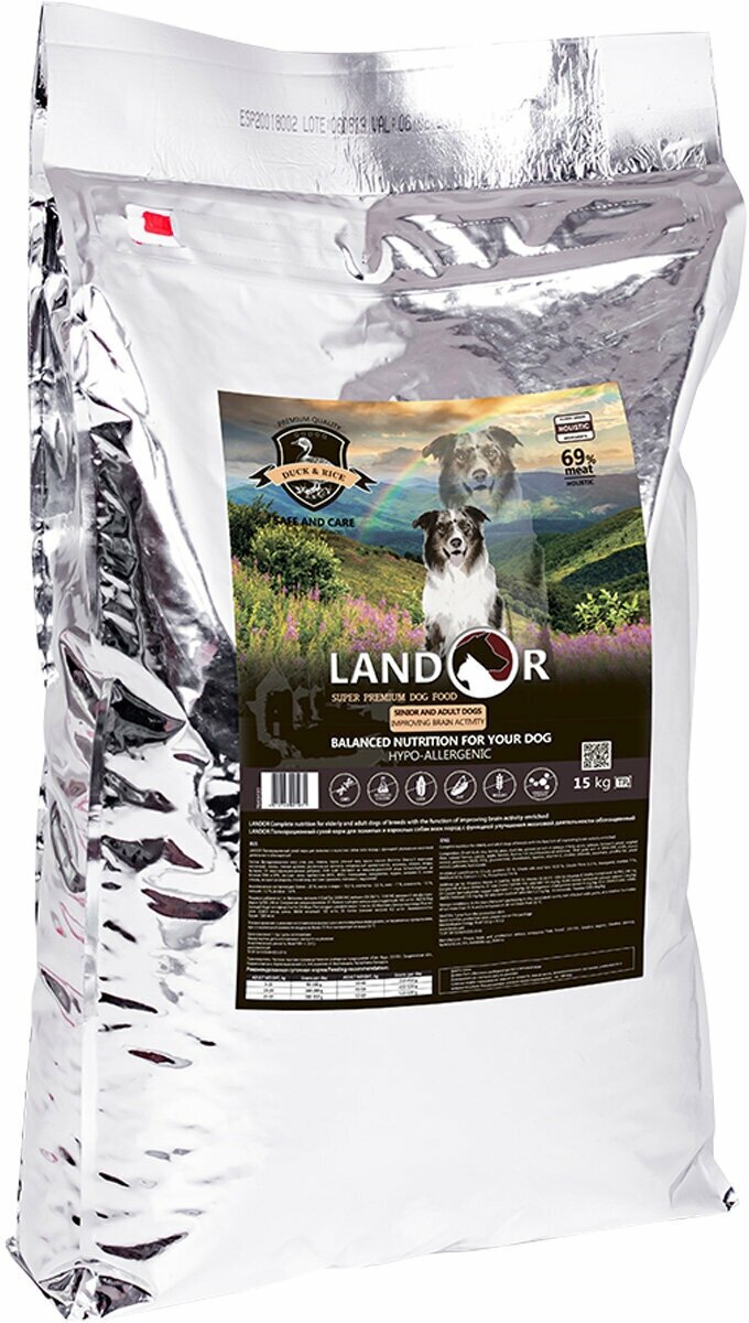 Корм для собак LANDOR DOG SENIOR & ADULT IMPROVING BRAIN ACTIVITY для пожилых и взрослых собак всех пород с функцией улучшения мозговой деятельности с уткой и рисом (15 кг)