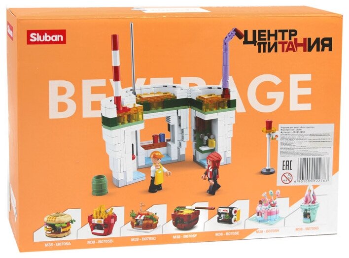 Лучшие цены. Констр-р 38-0705D Центр питания - Стаканчик лимонада 289 дет в кор.. Комплектация: детали конструктора - 289 шт., фигурка - 2 шт., аксессуары, инструкцияМатериал: пластикРазмер упаковки: 33*7*24 смВозраст: 6+Функционал: конструированиеСерия: Центр питанияУпаковка: картонная коробкаСтрана обладатель бренда: кнроригинальный блочный конструктор от торговой марки "Sluban" - это набор для. Магазины в вашем городе.