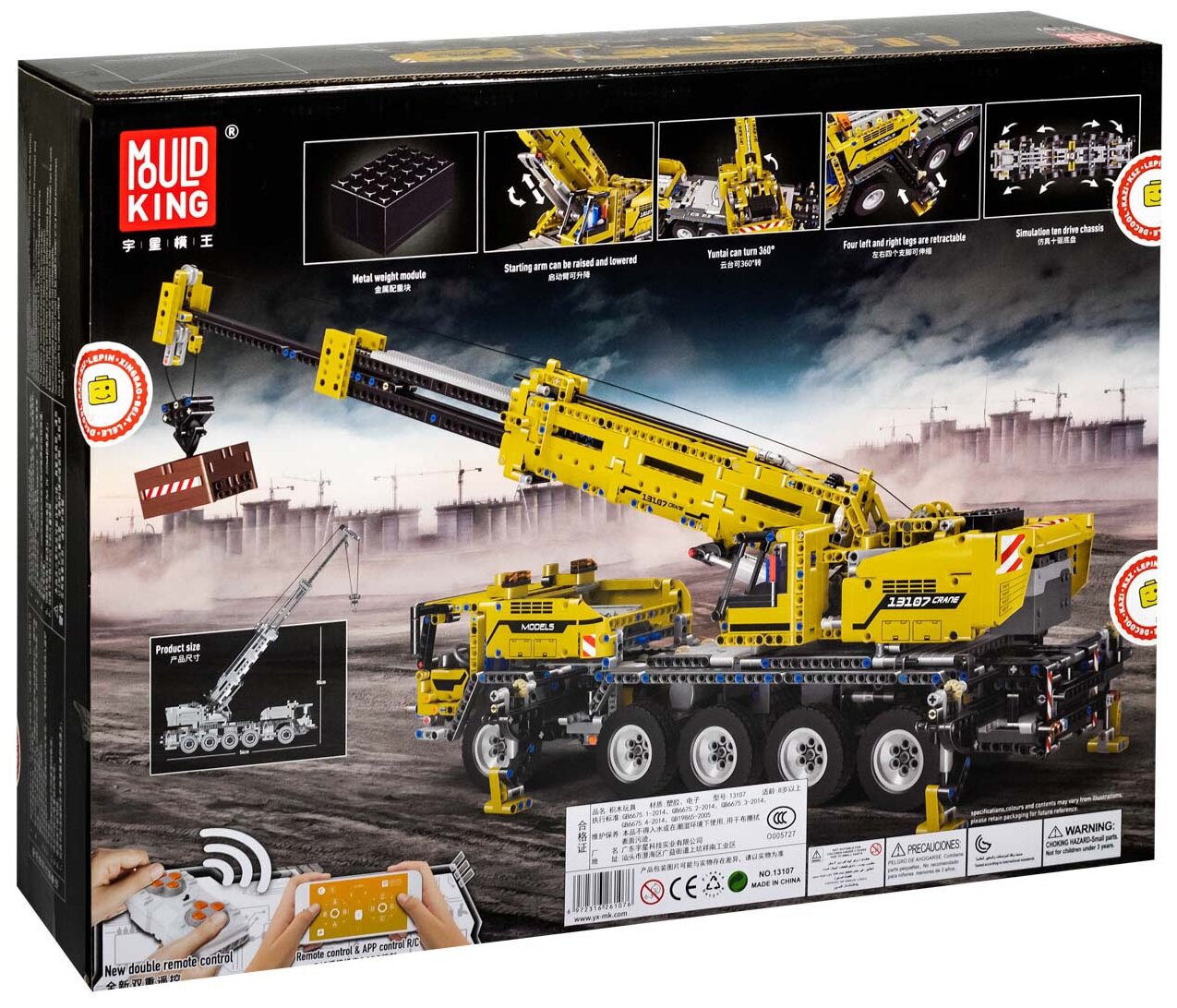 Лучшие цены. Радиоуправляемый конструктор «Передвижной кран MK II» — обновленная версия от Mould King (завершенная версия). Данная модель оснащена электрическим приводом, двигающимися поршнями. Открывается дверь кабины. Стрела крана перемещается и выдвигается на 70 см. Кран может трансформироваться в грузовик и контейнеровоз. Укомплектован более мощными моторами. Управляется при помощи пульта ДУ или через приложение на телефоне. Магазины в вашем городе.