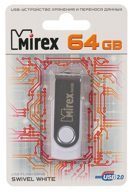 Флешка Mirex SWIVEL 64 ГБ, 1 шт., белый