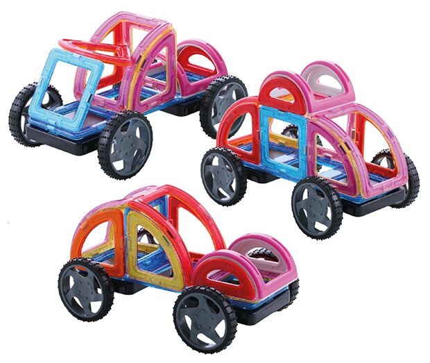 Лучшие цены. Магнитой — это серия магнитных конструкторов, которые состоят из необычных разноцветных пластиковых деталей в виде различных плоских геометрических фигур и позволяют собирать объемные конструкции. Игровой набор «Машинка» состоит из 14 деталей: квадратные, треугольные, полукруглые, изогнутые. Также в наборе 2 пары подвижных колес на креплениях. С помощью деталей юный архитектор сможет соорудить 3D модель автомобиля. Каждая деталь конструктора присоединяется к другой с помощью магнита, расположенного внутри. Магазины в вашем городе.