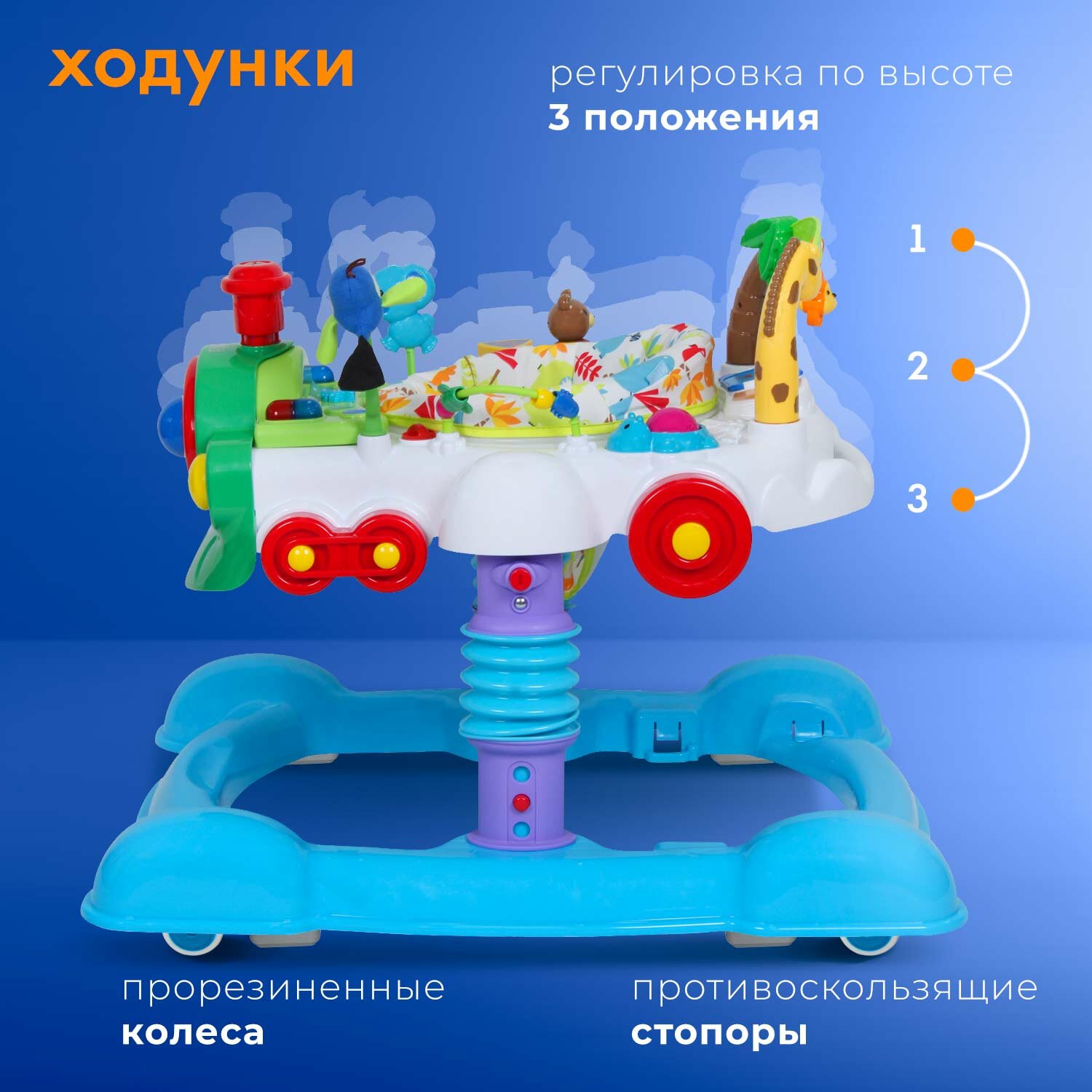 Ходунки Ходунки-прыгунки Nuovita Treno 4 в 1: ходунки, прыгунки, игровой центр, толкатель (Azzurro/Голубой)
