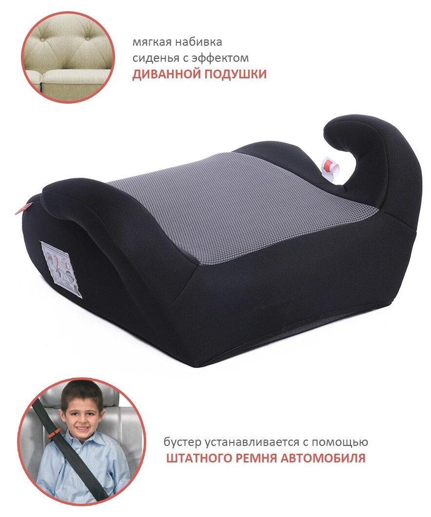 Лучшие цены. Детское автомобильное сиденье, группа 3 (22-36 кг), примерно от 6 до 13 лет. Очень лёгкий и удобный для ежедневных поездок бустер, практичный, мало пачкается. Подушка из гипоаллергенного материала крепится на функциональные "липучки", она очень мягкая (толщина подложки-3 см.), легко снимается и при этом не сползает. Бустер крепится штатным ремнём безопасности автомобиля. При перевозке в багажнике занимает мало места. Магазины в вашем городе.
