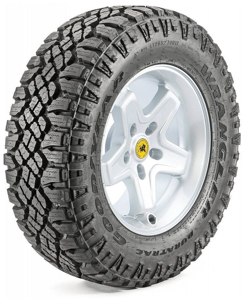 Лучшие цены. Шина Goodyear Wrangler Duratrac универсальна для любого сезона: идеальна зимой, комфортна летом. Надежное сцепление с дорогой, покрытой грязью и снегом Преодолевайте самые сложные участки пути с технологией TractiveGroove, которая обеспечивает отличное сцепление с дорогой, покрытой грязью и снегом. На шинах Wrangler DuraTrac вы найдете символ снежинки на фоне гор, указывающий на зимнее предназначение шины. Магазины в вашем городе.