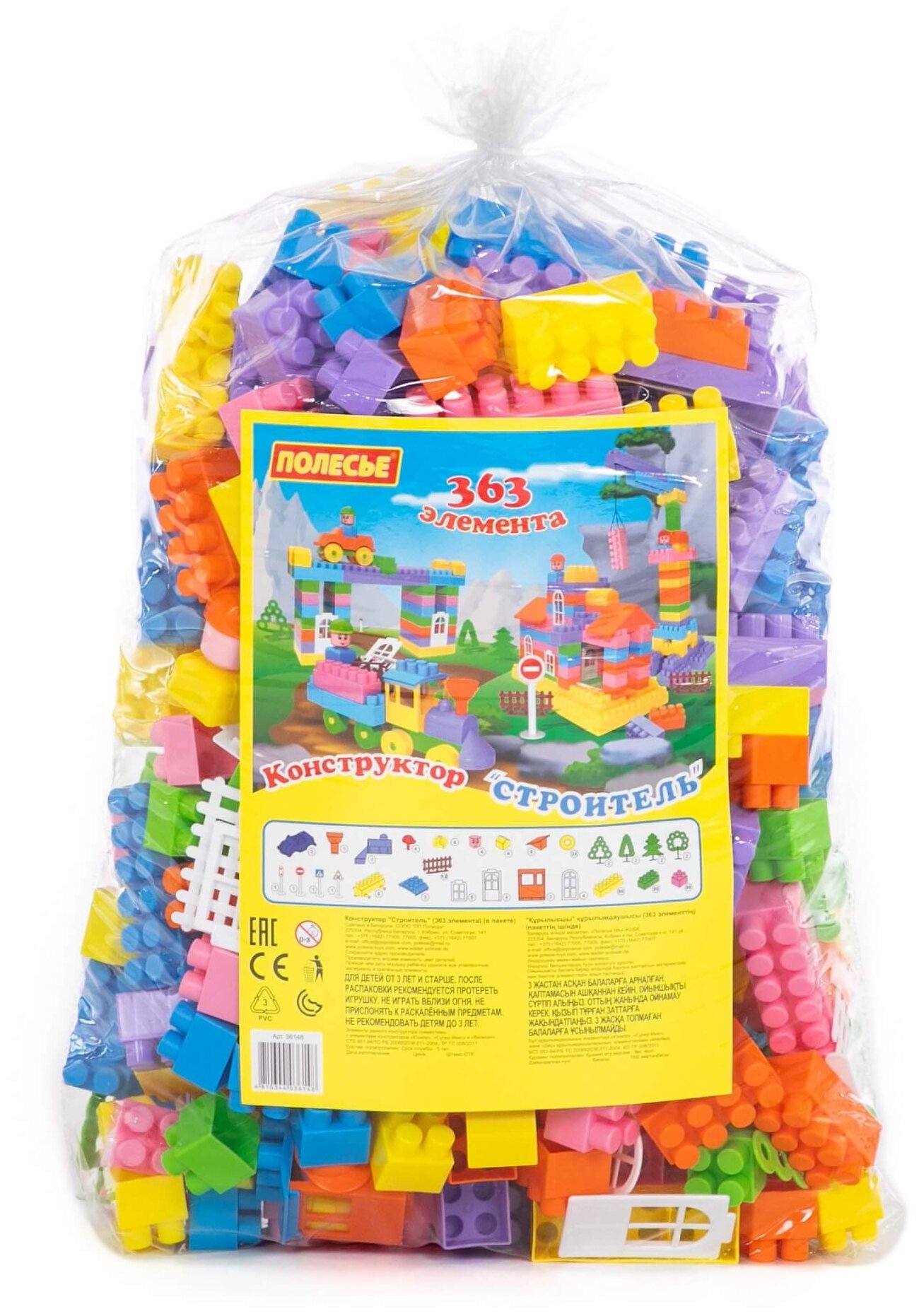 Конструктор Конструктор Строитель 363 элемента в пакете Полесье, 36148