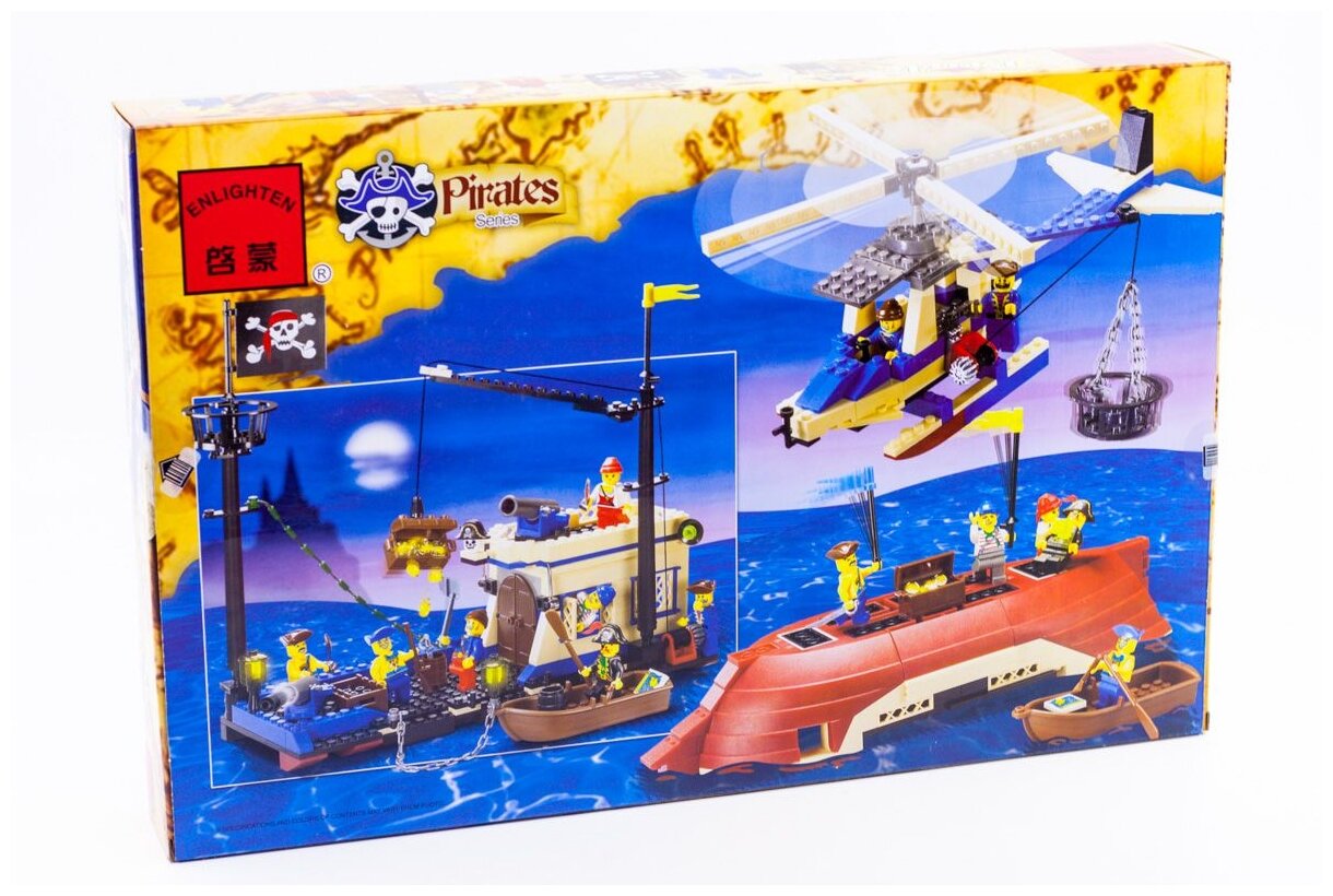 Лучшие цены. Из 487 деталей набора собирается двухпалубный пиратский корабль, на борту которого, помимо экипажа из 7 минифигурок, Вы найдете множество тематических аксессуаров. Пиратский корабль имеет несколько стреляющих пушек, ящики для ядер, каждый член экипажа вооружен саблями, мушкетами и пистолетами. На корабле есть трюм, в котором пираты хранят свои драгоценности. К борту судна крепится шлюпка, которую используют для высадки на берег. Магазины в вашем городе.