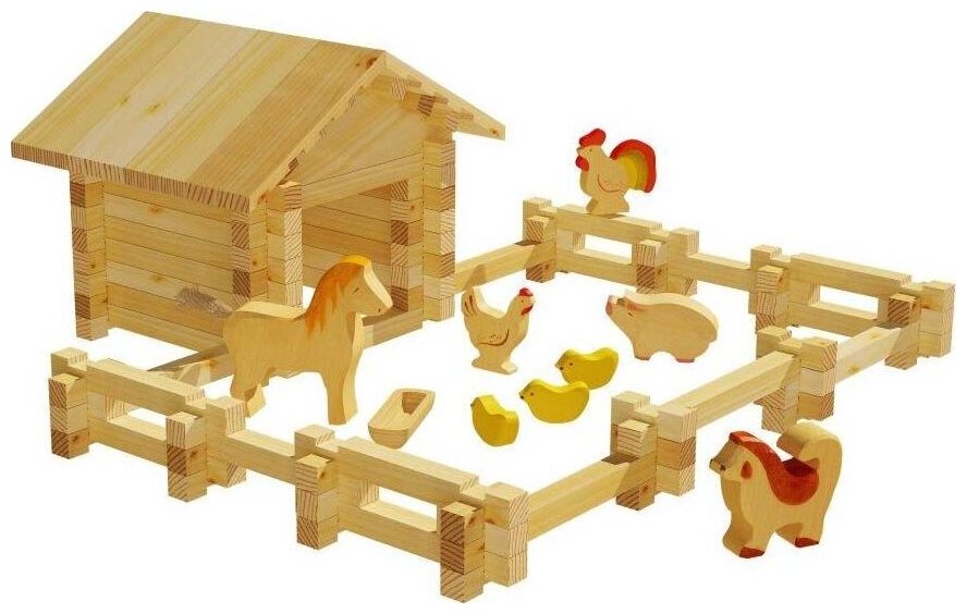 Лучшие цены. Артикул: 823-583 Конструктор Лесовичок Солнечная ферма №1 (les 037) Конструктор «Солнечная ферма №1» создан для самых юных строителей. Собрать из деревянных деталей собственную сельскую усадьбу под силу даже трехлетнему малышу. На игрушечной ферме все по-настоящему: около симпатичного сарайчика, окруженного загоном, разместились курочка с цыплятами, поросенок и лошадка, на заборе гордо восседает красавец-петух. Магазины в вашем городе.