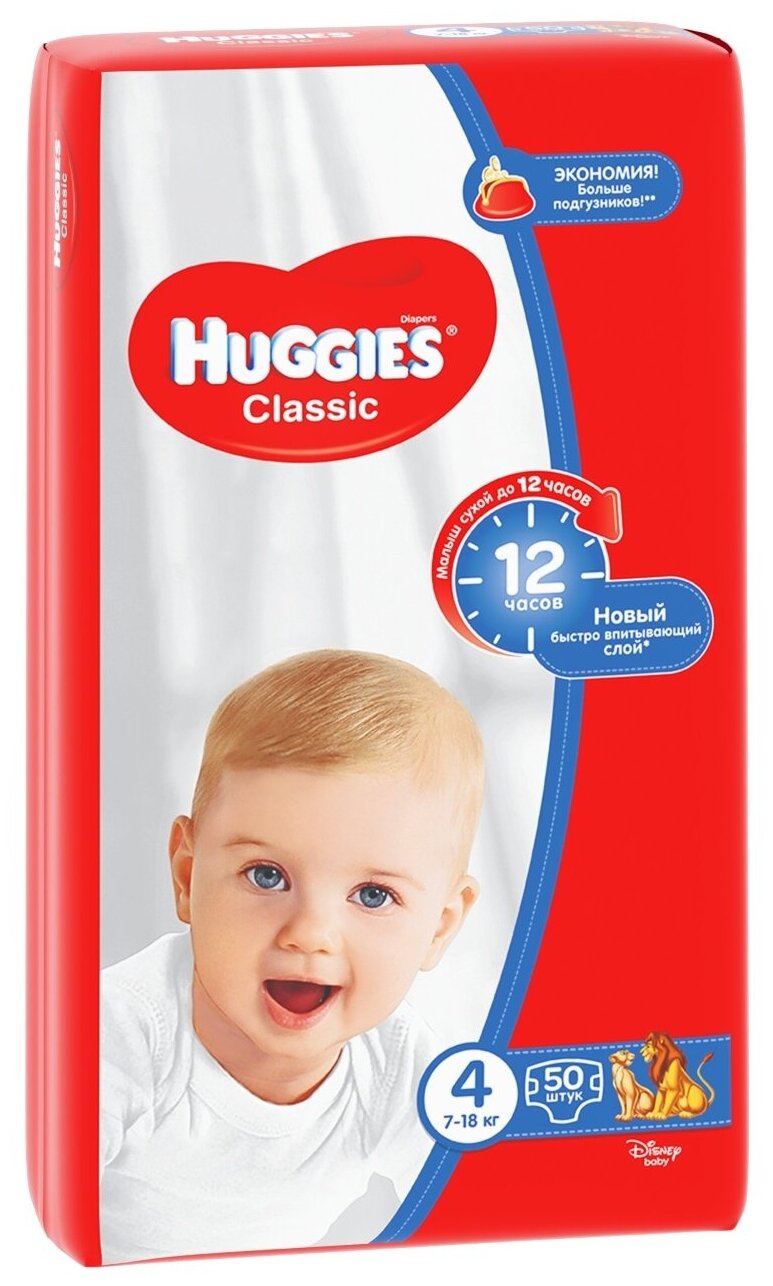 Huggies подгузники Classic 4 (7-18 кг), 50 шт.