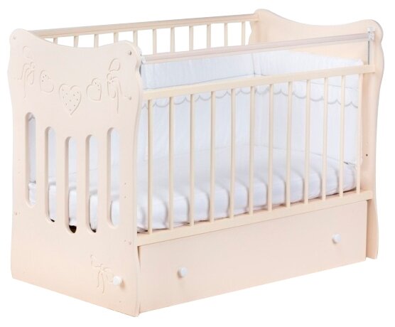 Кроватка Кроватка "Бантики" маятник поперечный с ящиком, айвори