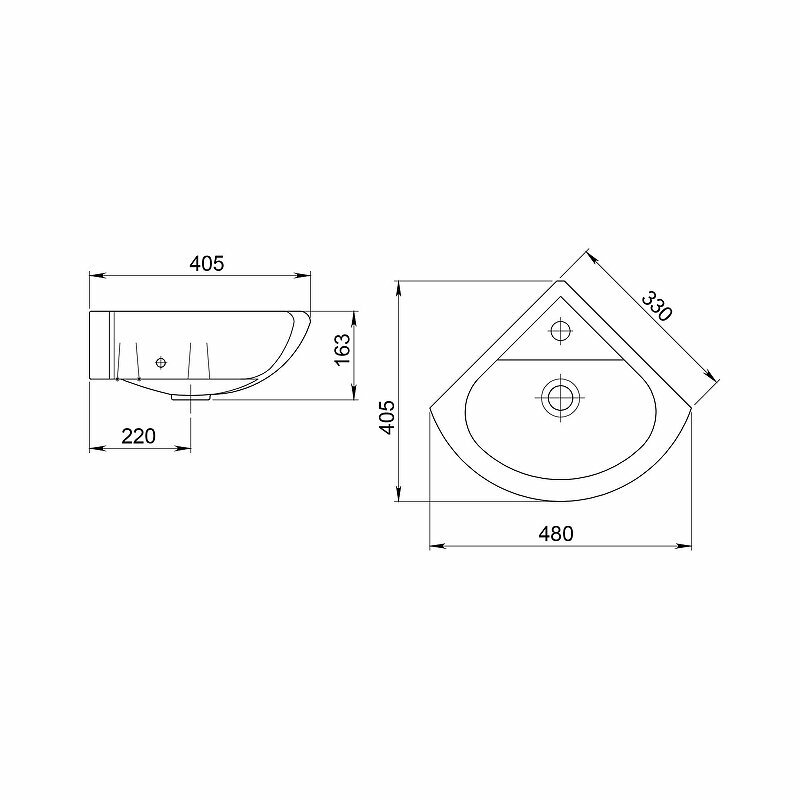 Лучшие цены. Раковина Santeri Радиан 50 1.3130.9.S00.10B.0 угловая. Характеристики: - Цвет: белый. - Материал: фарфор. - Размеры (ШхВхГ): 48х16.3х40.5 см. - Монтаж: подвесной. - Угловая. - Расположение отверстия под смеситель: по центру. - Число отверстий под смеситель: 1. В комплекте поставки: чаша раковины. Магазины в вашем городе.