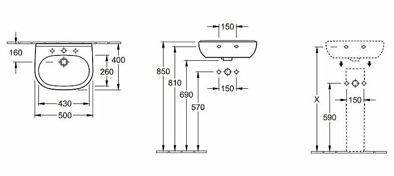 Раковина подвесная Villeroy & Boch 53605001 O.Novo Раковина подвесная 50х40 см, альпийский белый