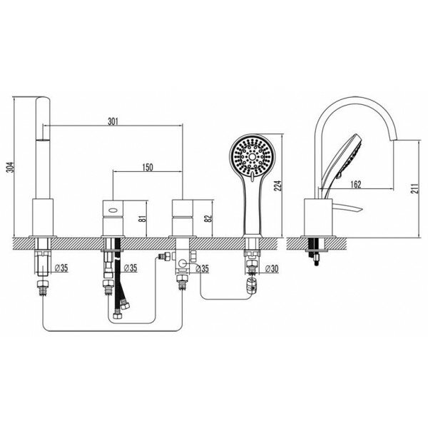 | Диаметр отверстий для установки | 35 мм / 30 мм для душевой лейки / |