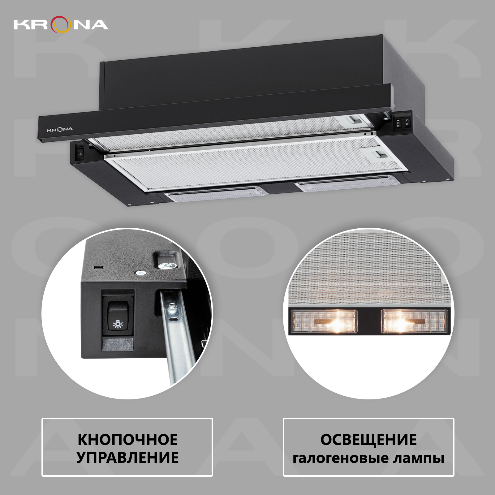 Кухонная вытяжка встраиваемая KRONA Kamilla 600 BLACK 1M, черный 5 320 ₽ Подробнее
