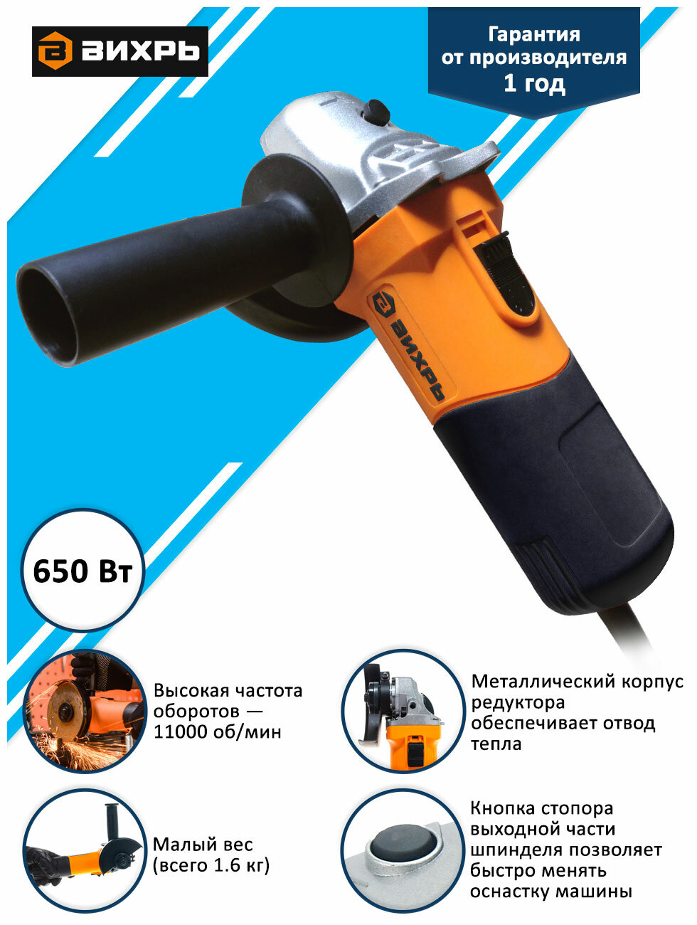 УШМ вихрь УШМ-115/650 2014, 650 Вт, 115 мм
