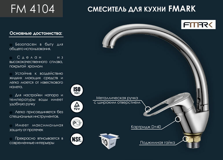 Смеситель для кухни (мойки) Ledeme H04 L4104 серебристый 3 331 ₽ Подробнее