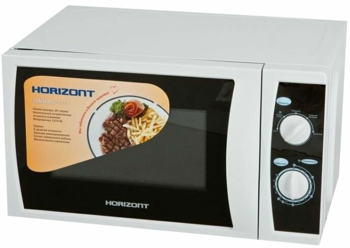 Микроволновая печь Horizont 20 MW700-1378 B /БЕЛАЯ, соло, 20л, 700Вт, мех.упр.