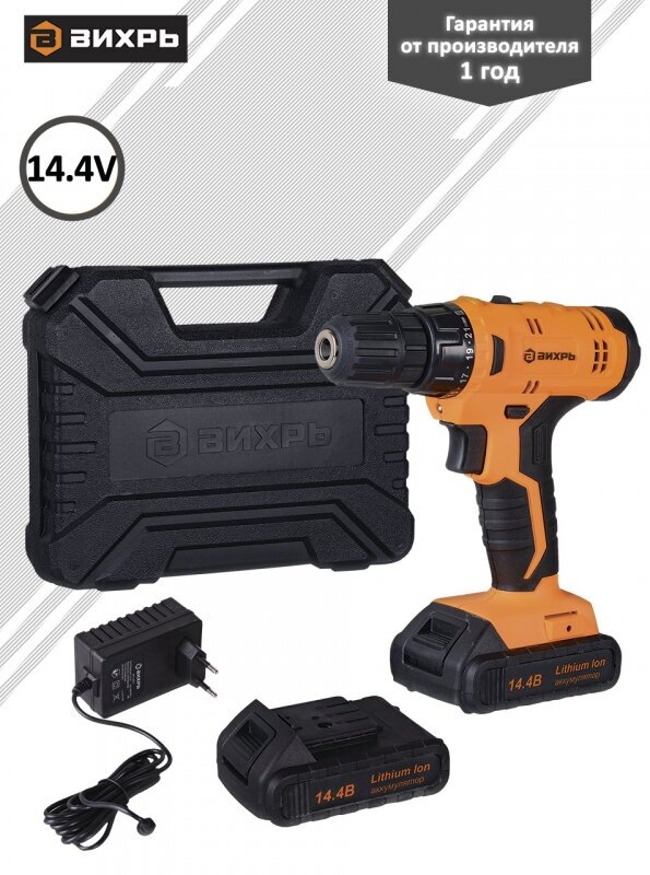 Дрель-шуруповерт аккумуляторная ДА-14.4Л-2К Вихрь вихрь 72/14/8 (1 шт.)