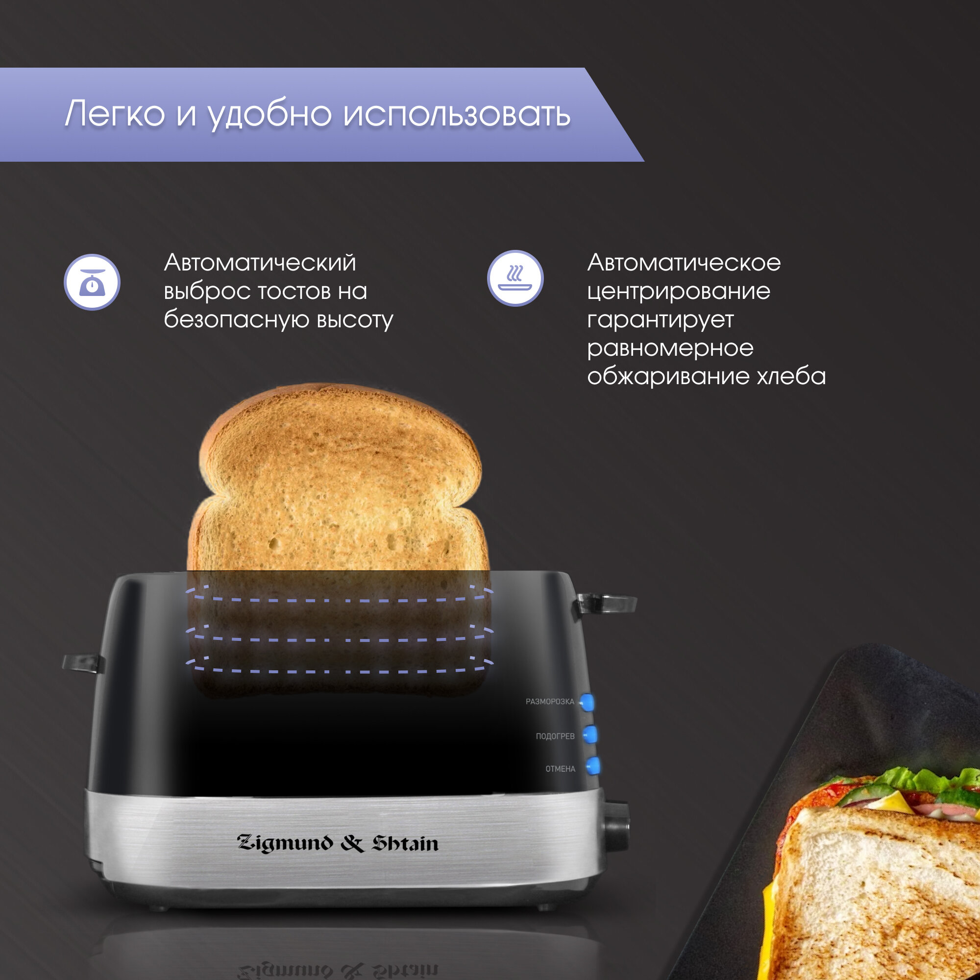 Тостер тостер zigmund&shtain st-80b /900вт, механич. упр., 7 степеней обжаривания/