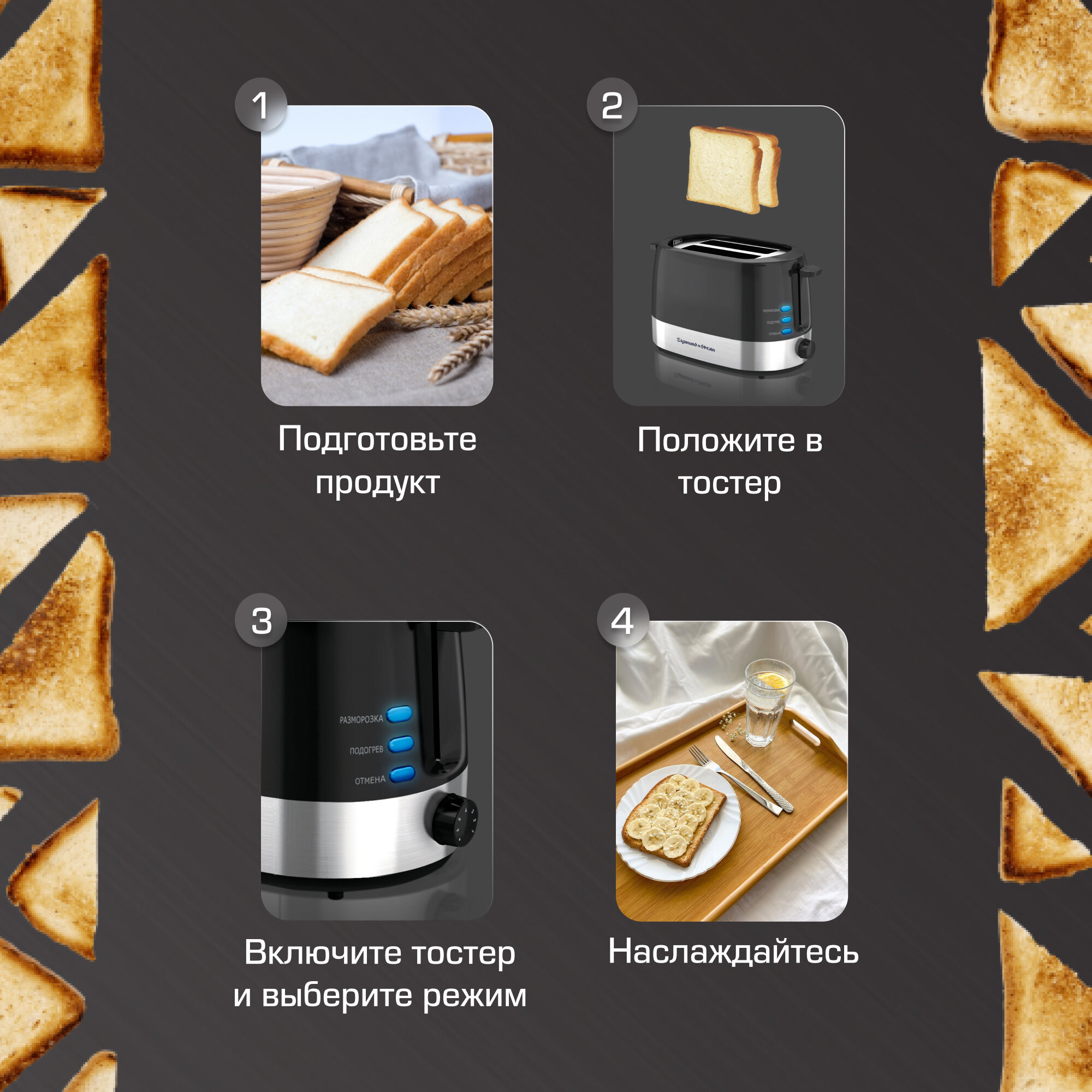 Тостер Zigmund & Shtain ST-80 B 3 290 ₽ Подробнее