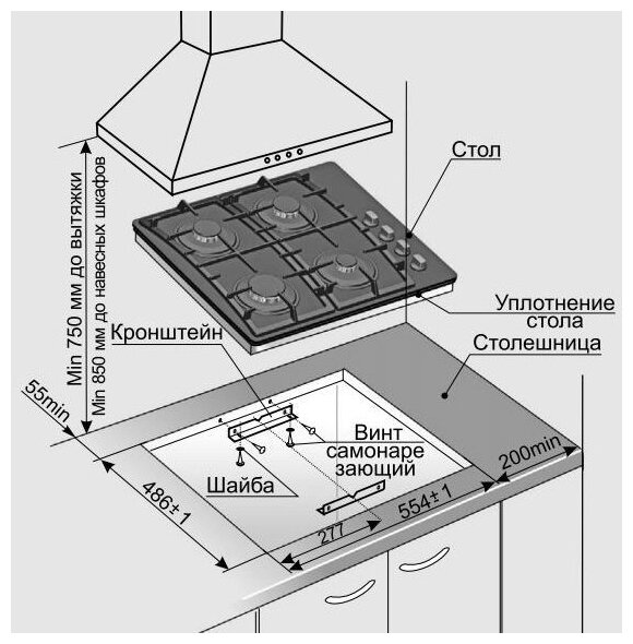 | Размеры для встраивания (ШхГ) | 554х486 мм |