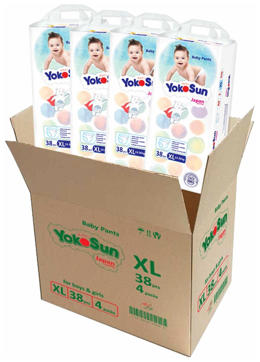 Подгузники-трусики YOKOSUN, размер XL (12-20 кг), 38 шт. Х 4, 152 шт.