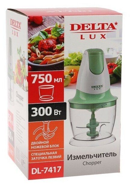 Измельчитель DELTA LUX DL-7417 белый с зеленым: 300Вт, 2 лезвия (Россия)(8)