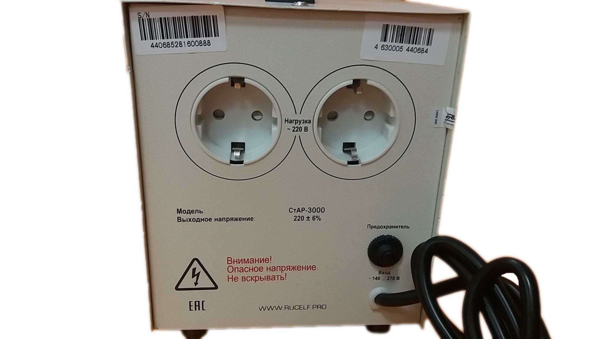 Лучшие цены. Стабилизатор напряжения Rucelf СтАР-3000 2 розетки. Магазины в вашем городе.