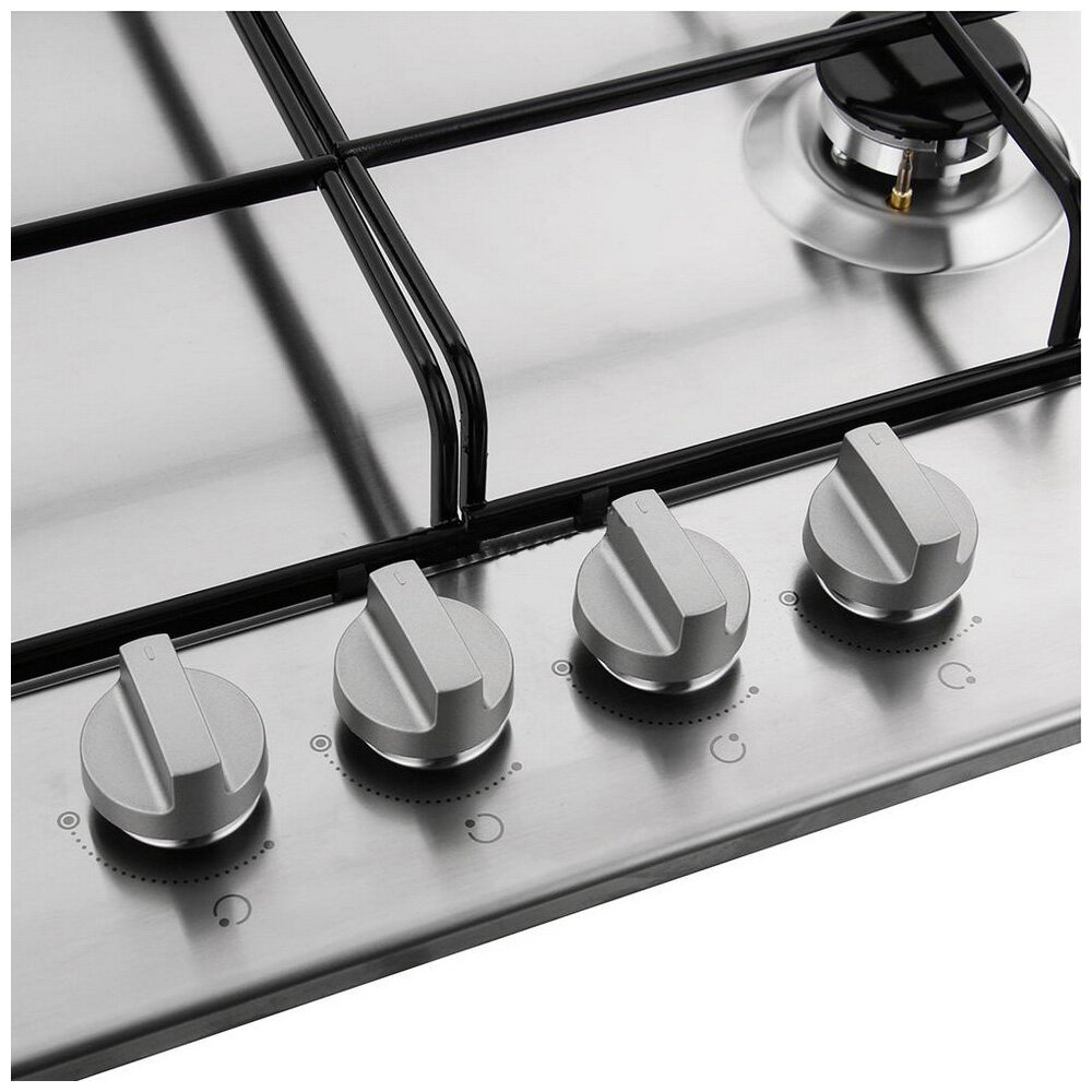 Лучшие цены. Общие данные: Габариты: 5,2х58х51 см Габариты ниши для встраивания: -х56х48 см Рабочая поверхность: нержавеющая сталь Количество конфорок: 4, в том числе 1 двухконтурная Мощность конфорок: 2 х 1650 Вт (75 мм) 1 х 3500 Вт (110 мм) - WOK-конфорка 1 х 1000 Вт (55 см) Автоматический электроподжиг Газ-контроль Управление: Поворотные регуляторы Дополнительная информация: Эмалированные решетки Возможность работы на баллонном газе Суммарная мощность конфорок: 7800 Вт. Магазины в вашем городе.