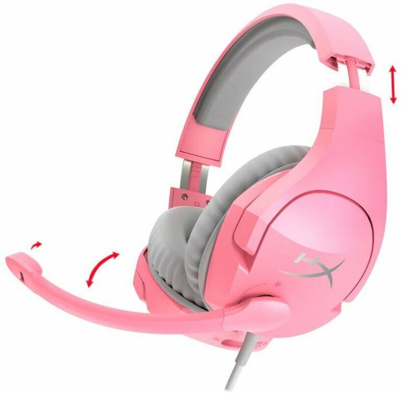 Игровая гарнитура HyperX Cloud Stinger проводная, 18–23000 Гц, 30 оМ, 102 дБ, mini-Jack 3.5 мм, розовый